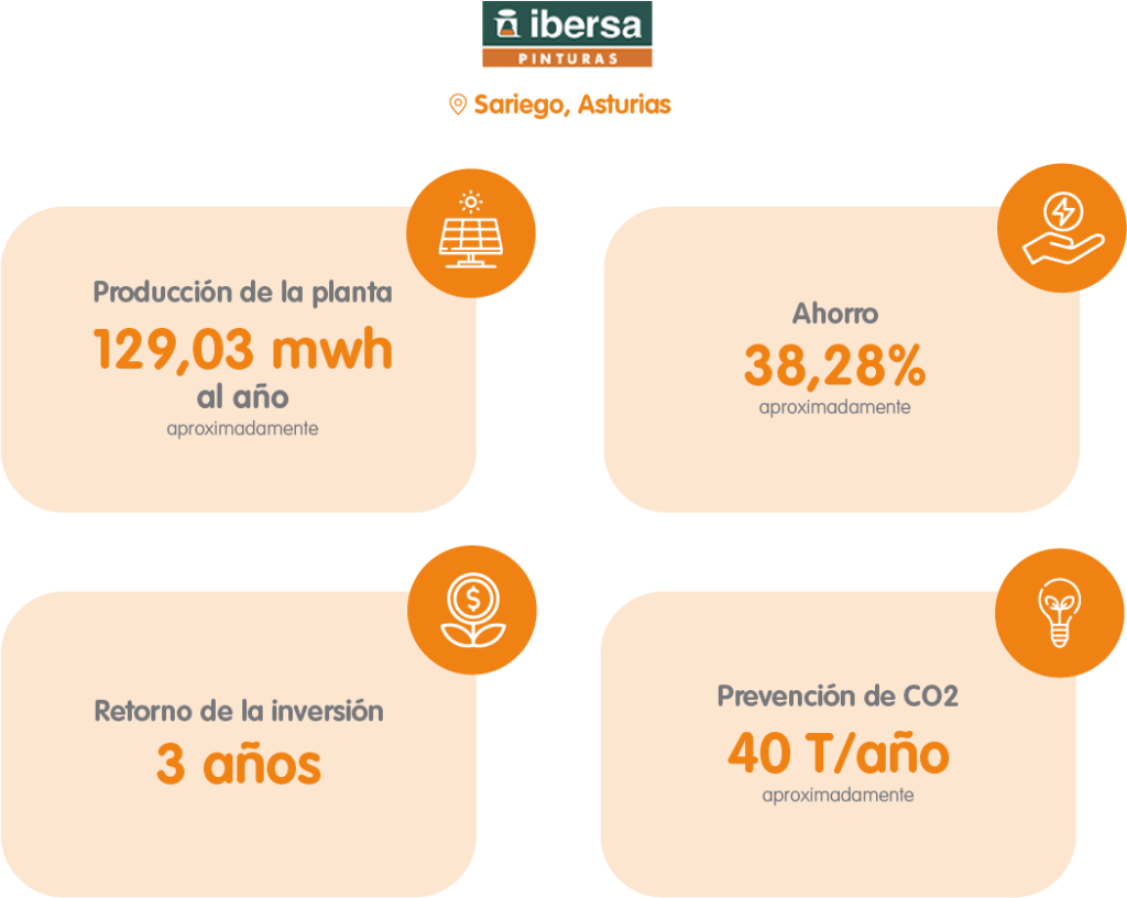 En su sede central, situada en el concejo de Sariego (Asturias), Ibersa lleva a cabo una permanente labor de investigación y desarrollo de nuevos productos, así como exhaustivos controles de calidad en sus pinturas. Siguiendo con su política de calidad y medio ambiente, quisieron modernizarse, para realizar su labor comercial de manera sostenible y más respetuosa con su entorno. Para ello, quisieron contar con nosotros para la colocación de un campo solar fotovoltaico compuesto por 220 módulos que dotan de una potencia de 121.0 kWp.